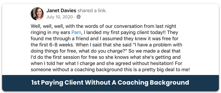 Pam does over 95% of our calls she is a seven-figure business coach and once global trainer for new coaches who paid upwards of $70k for a franchise.